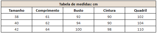 Para ajudar na escolha do tamanho ideal, medimos nossas peças cuidadosamente: